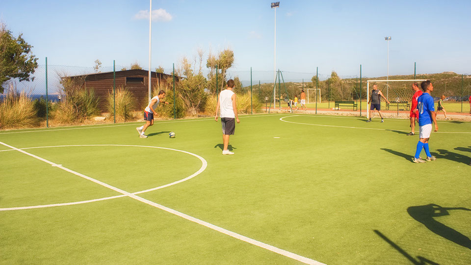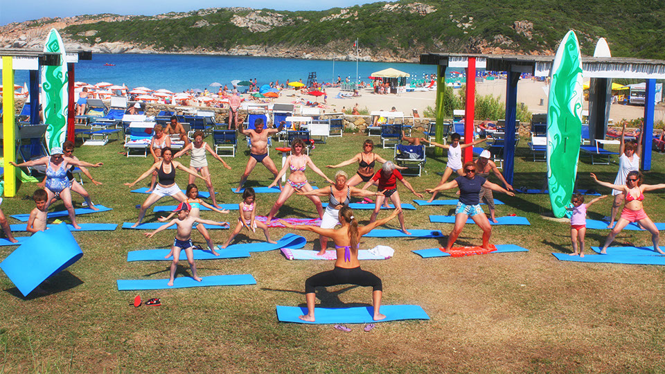 Une très belle et grande plage de sable fin s’étend au pied du village, équipée de parasols et transats (service gratuit). Accessible à pieds en suivant des sentiers ou à bord du petit train. Disponibles à la plage: restaurant et bar.