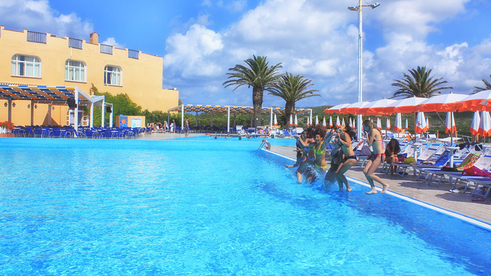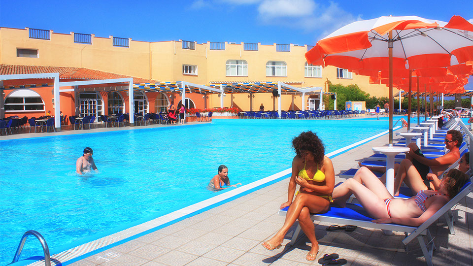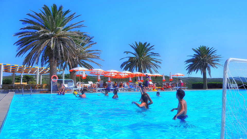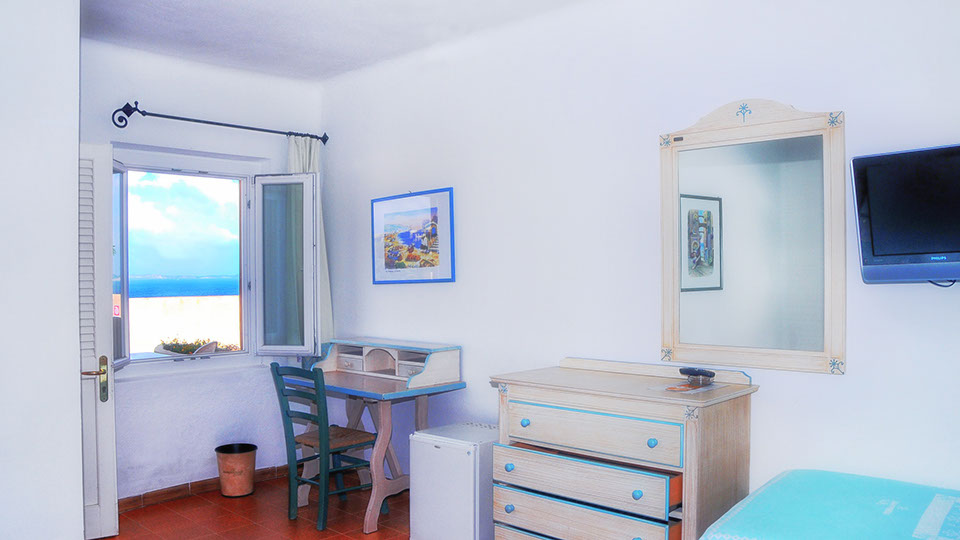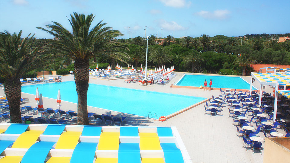 Deux batîments “la Maddalena” et “Caprera” avec 598 chambres confortables dont 150 chambres doubles et 448 appartements à 4 et 5 lits. Toutes les chambres sont équipées de salle de bain avec toilettes, sèche-cheveux, téléphone direct, TV, coffre-fort, terrasse et vue mer. Un petit train met en communication les différents niveaux de la structure hôtelière en suivant un itinéraire qui mene jusqu’à la plage. Une promenade assez sympathique avec une très belle vue sur la plage et la mer.